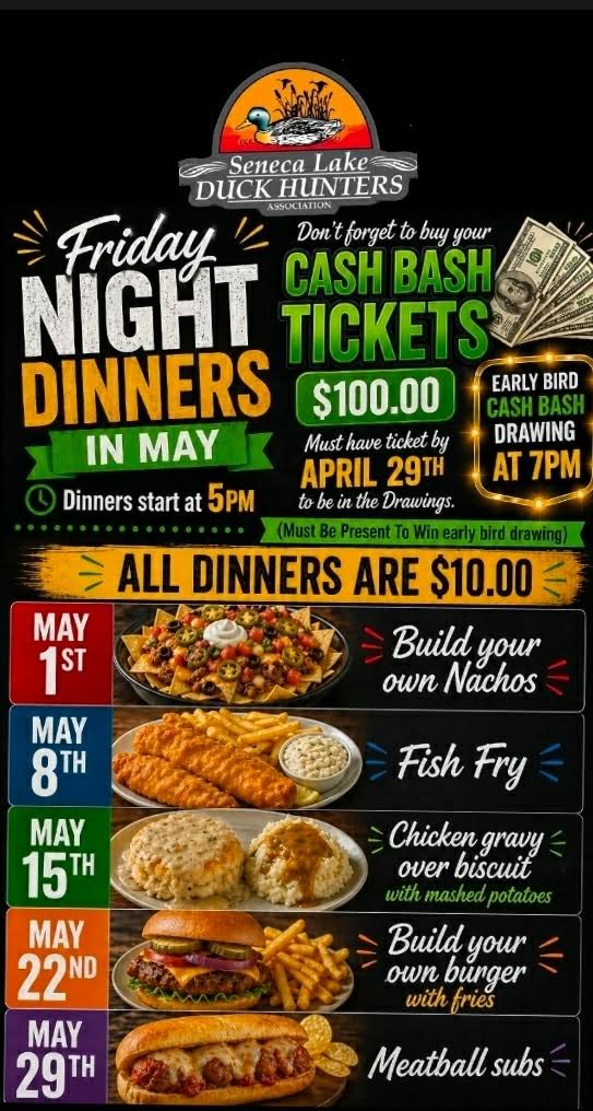 Located in the heart of the Finger Lakes region of New York State lies a huge sportsman area known for its fishing and hunting offerings. The Seneca Lake Duck Hunters Club has a generational history Dedicated to Environmental Conservation, Preservation of Wildlife, Habitat, Shooting Sports, and Hunter Safety Education. The SLDHC offers shooting leagues, horseshoe leagues, public meal nights, and a place to hold your special events.